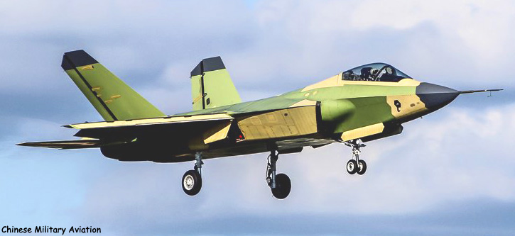 neighboring countries including Japan and South Korea to pursue their own 5th-generation stealth fighters such as F-35. Some specifications: length 21.2m, height 4.69m, wingspan 13.01m, normal TO weight 29t, max speed >Mach 2. In August 2008 it was reported that 611 Institute was selected to be the main contractor for the development of J-20 and 601 Institute as the sub-contractor. Subsequently a full-scale metal mockup was built at CAC. One rumor in May 2010 claimed that 611 Institute started to construct the first prototype, which was expected to fly by the end of 2010. Two technology demonstrators were constructed and the first low-speed taxi trial by #2001 took place on November 4, 2010. The #2002 made its maiden flight on May 16, 2012. Both #2001 and #2002 were sent to CFTE in Yanliang in 2012, where #2002 was renumbered as 2004 and #2001 tested a light gray RAM paint. In March 2013 the #2002 technology demonstrator was seen conducting weapon integration tests with a dummy PL-10 IIR guided short-range AAM (to be followed by PL-16) on its retractable side missile launch rail. Unlike that of F-22, the weapon bay door is closed while the missile rack is fully extended externally to maintain low RCS and reduce drag during dogfight. In July 2013 it conducted similar tests carrying dummy PL-15 AAMs inside the belly weapon bay. The building the third J-20 was delayed until late 2013 due to the fact that the new #2011 prototype features certain "major improvements" and is no longer considered as a "technology demonstrator". The first low-speed taxi test of #2011 prototype took place on January 16, 2014, high-speed taxi test on February 18, 2014. The aircraft was seen to have a nosed mounted IRST with a 240° view and an F-35 style frame-strengthened one-piece canopy plus a wide-angle holographic HUD with a slimmer frame. Its cockpit might have also been upgraded with a single 24x9" touchscreen panoramic cockpit display (PCD) similar to that of F-35 plus a smaller LCD between the legs. As the result a side-stick and the throttle are expected to be installed to control the aircraft. The combination of AESA radar, EODAS, IRST, advanced cockpit design and HMD further improves pilot's situation awareness by providing the highest degree of "information fusion". The emergence of IRST suggests that J-20 might possess a limited AG capability using laser or TV guided PGMs. In addition it has numerous aerodynamic refinements including reshaped tail fins, extended tail booms, nose landing gear door, LERX and engine intakes with two hexagonal inlet/outlet of the fuel-air heat exchanger as well as smaller underwing actuators to further reduce RCS. Two side-looking radar antennas may have been installed underneath the elongated hexagonal dielectric fairings (in X & Z axes) on each side of the nose. Two large tail booms appear to house additional ECM or rear-view radar antennas to protect the rear hemisphere of the aircraft. A new ECM antenna can be seen aft the air intake as well. The 201x prototype also started to wear a new light blue/medium gray RAM coating. The aircraft also features a new "through the canopy" ejection system by using the detonation cords. The #2011 prototype first took off into the sky on March 1, 2014. Different types of "stealth" nozzle were tested on one of the engines onboard #2011 in April 2014. The first flight of #2012 took place on July 26, 2014. The #2013 prototype took off for the first time on November 29, 2014, and the #2015 prototype on December 19, 2014. Both 2013 and 2015 have the pitot tube removed from the nose and both feature a further refined nose radome and tail booms, suggesting the AESA radar has been installed. They were speculated to represent a nearly "frozen" technical configuration before the initial production started. It was rumored in April 2015 that both 2013 and 2015 prototypes were to be transferred to CFTE for further testing. The #2016 prototype made its first flight on September 18, 2015. The aircraft appears to feature slightly reshaped DSI bumps, engine nozzles as well as a new ejection seat. The aircraft was transferred to CFTE for further testing on December 2, 2015. The last prototype (#2017) had its maiden flight on November 24, 2015 before the initial production started in late 2015. The aircraft appears to feature a slightly reshaped canopy. Two pairs of chaff and flare launchers were installed in the tail booms between the tail fin and the engine nozzle. There were speculations that a compartment was reserved for an internal gun (Gatling style 23mm cannon?) underneath a top panel on the starboard side of the fuselage next to the canard wing. This design was rumored to have been tested onboard one of the prototypes. However in the end it was decided that the aircraft will be produced without a gun. A new J-20 in yellow primer first appeared in December 2015 which was likely to be the first LRIP model (2101, 00 batch). First flight took place on January 18, 2016. More 00 batch J-20s (CB00xx) are being built in 2016, at least 4 (2101-2104?) by mid-2016, wearing a medium gray color scheme and low-visibility PLAAF insignias. The aircraft appears to have 4 hardpoints underneath the wings for external payloads such as missiles and drop tanks. Furthermore up to 8 PL-15s can be carried externally with dual launch rails (two underneath each wing). They can be carried during routine air patrols in peacetime. The pylons can be jettisoned in case of an emergency situation and the aircraft will quickly turn into the stealthy combat mode. It was unveiled in November 2025 that a speical pylon carrying up to 4 SDBs was developed which can be fitted inside the weapon bay. If entering the service, it would give the aircraft a secondary ground attack capability. The first batch of six was expected to enter the service with PLAAF Dingxin Flight Test & Training Base by the end of 2016 (S/N 78x7x). Recent images (October 2016) indicated that two LRIP aircraft w